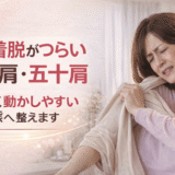 これは、肩関節まわりの緊張や炎症に加え、姿勢・神経の働き・血流が影響しているケースが少なくありません。